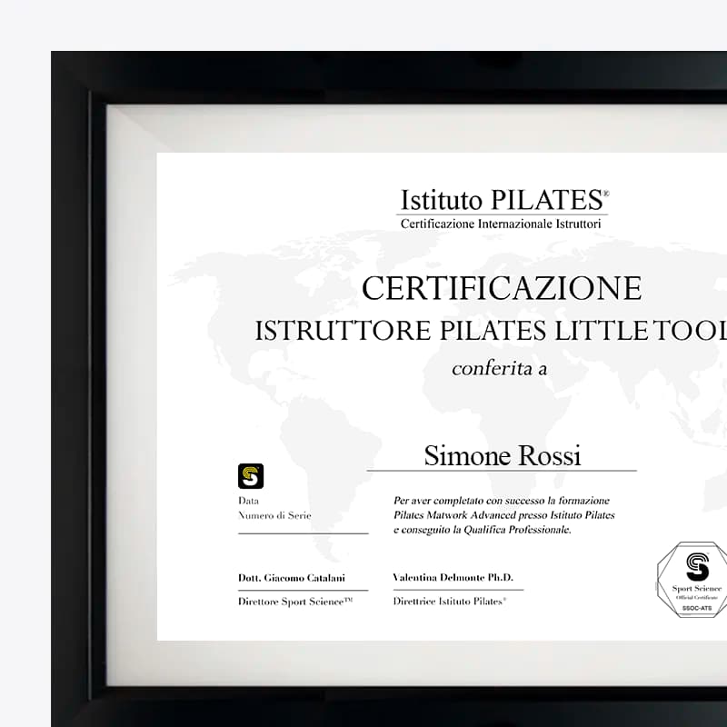 Il corso rilascia la Certificazione Ufficiale Riconosciuta “Istruttore Pilates Little Tools” erogata da Istituto Pilates con ACSI/CONI e Sport Science™ previo superamento Esame online, incluso nel Corso di Formazione.